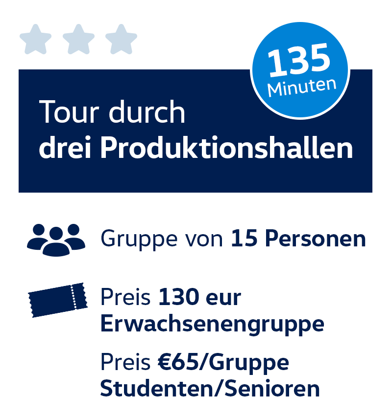 Die Besichtigungstours der Produktionshallen sind für Grundschulschüler ab 12 Jahren, Studenten an Mittel- und Hochschulen, Jobsuchende in der Automobilindustrie, Technikbegeisterte, aber auch für Familien und breite Öffentlichkeit bestimmt. Unsere Tour-Guides beantworten gerne Ihre Fragen und teilen mit Ihnen interessante Fakten hinter den Kulissen der Produktion.